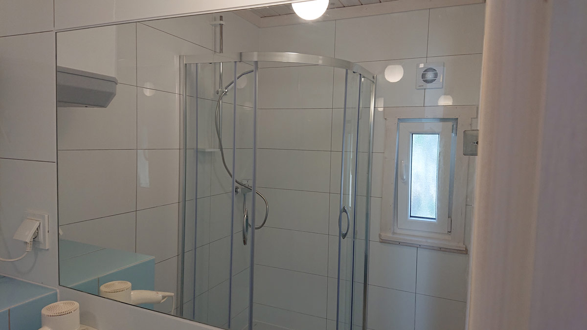 W każdym z domków nad morzem znajdują się dwie sypialnie usytuowane na piętrze. Jedna z łóżkiem małżeńskim oraz dostawką, druga z dwoma łóżkami pojedynczymi. Na dole znajduje się salon z rozkładaną kanapą, tv, aneks kuchenny i łazienka. Aneks kuchenny wyposażony jest w kuchenkę elektryczną, lodówkę, zmywarkę oraz niezbędne wyposażenie. W domkach do Państwa dyspozycji są dwa zadaszone tarasy, jeden frontowy z widokiem na plac zabaw, drugi na tyłach domku ze strefą kameralną do grillowania.